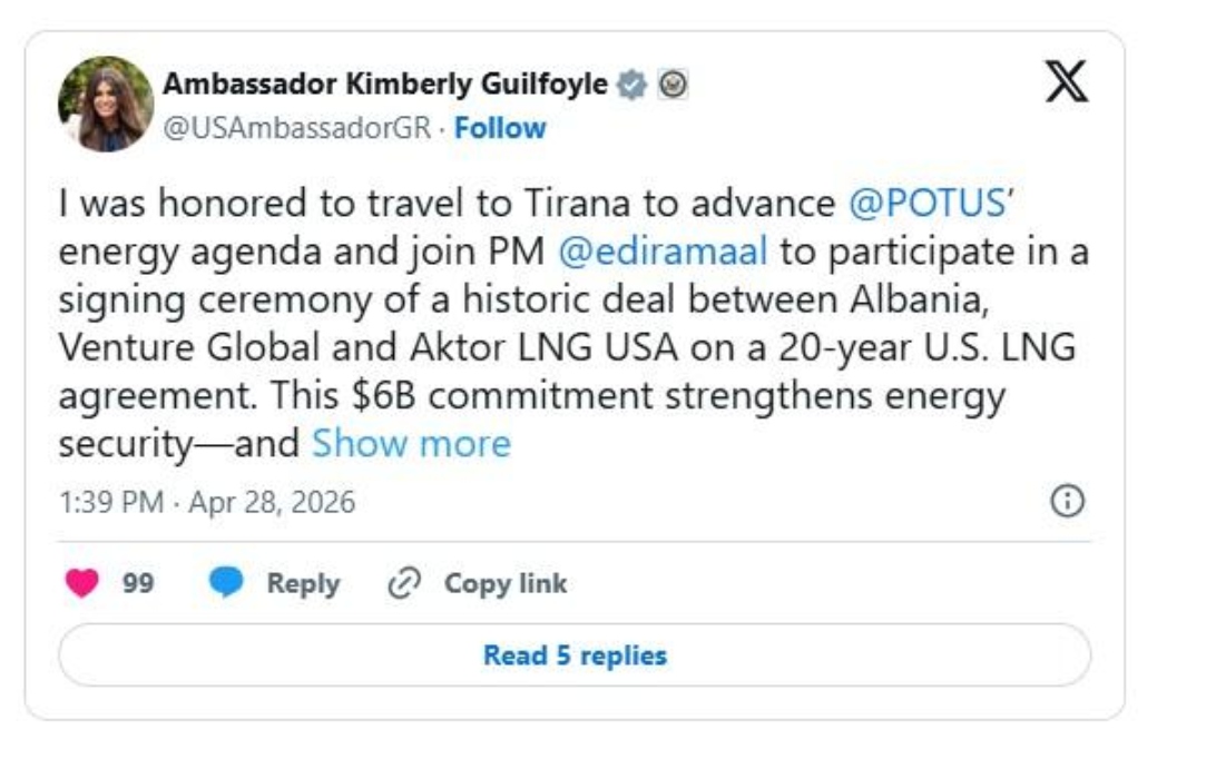 A landmark vigor statement worthy astir €6 cardinal ($6.5 billion) was signed betwixt Albania, US-based Venture Global, and Aktor LNG USA, marking 1 of the astir important semipermanent LNG proviso deals successful Southeast Europe.