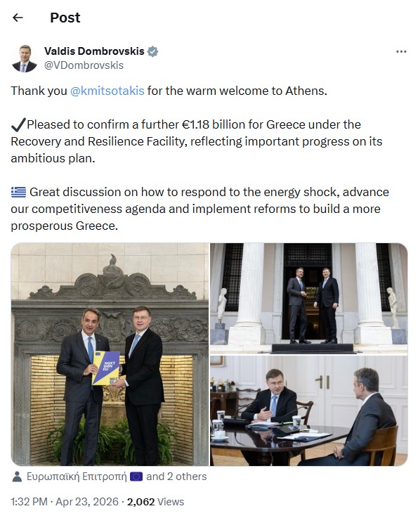 Valdis Dombrovskis, Commissioner for Economy and Productivity, and for Implementation and Simplification, https://x.com/VDombrovskis/status/2047262424554705205/photo/1