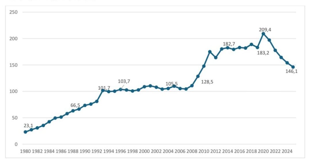 Due to extraordinary fiscal spending and the recession caused by Covid-19, Greek debt had risen in the first quarter of 2021 to 212.9% of GDP—more than double the European average, which at that time stood at 91.5%. However, by the end of 2025, the debt-to-GDP ratio had declined to 146.1%. This decrease—amounting to nearly 67 percentage points within four years—was achieved despite the pressures on the economy from the dual energy and supply crisis triggered by Russia’s invasion of Ukraine.