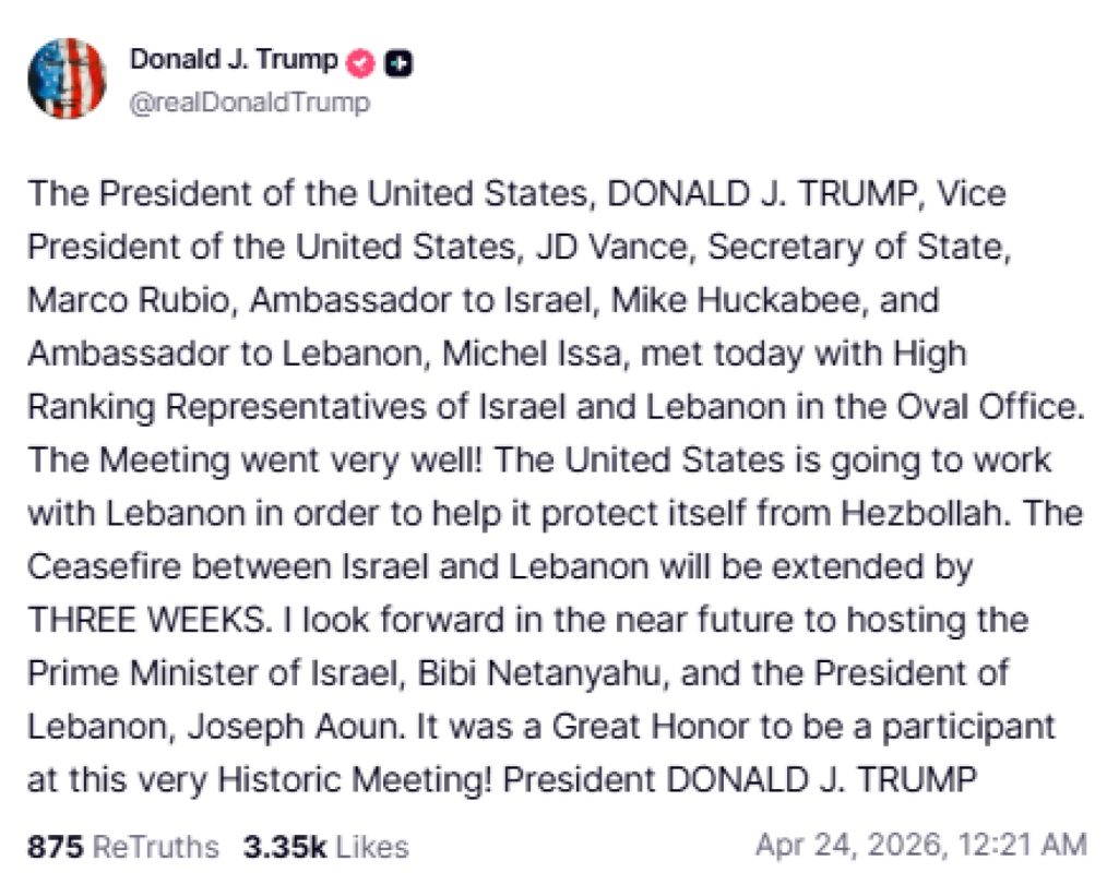 • Donald Trump extends Israel–Lebanon ceasefire by 3 weeks, buying diplomatic time